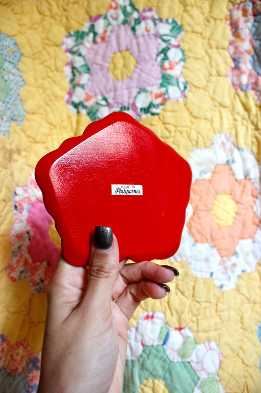 1970s Wooden Hibiscus Flower Coaster
