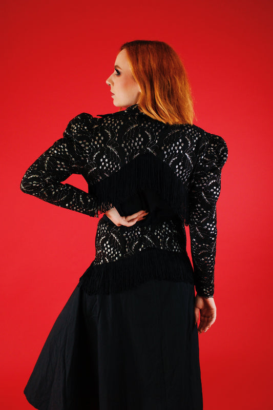 1980s Gothic Western Fringe Dress