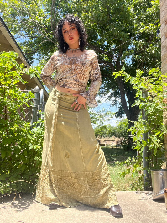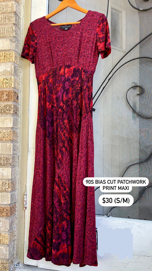 90s bias cut patchwork dress + earth tone scarf for aubrey