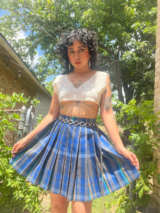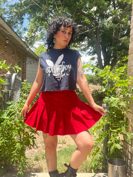 70s/80s red soffe shorts + blue plaid tennis skirt for rose