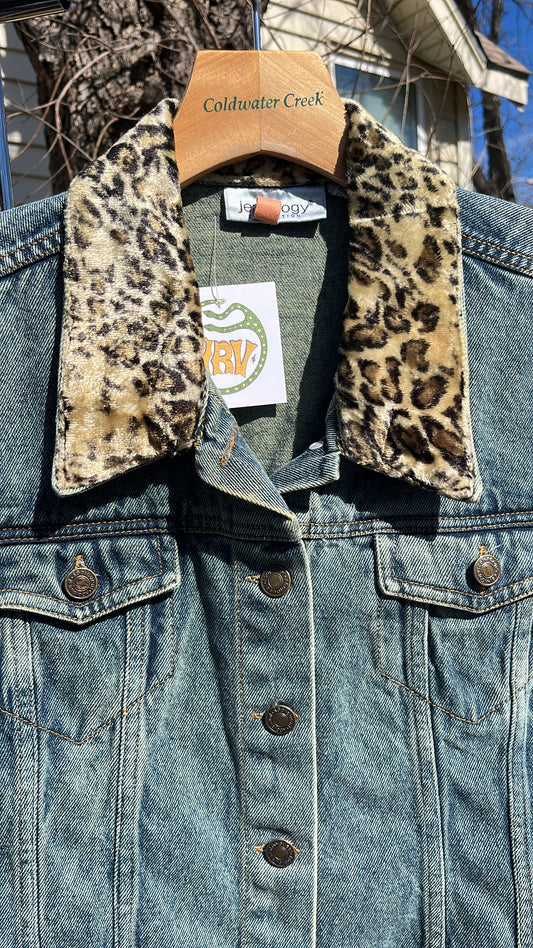 90s fuzzy tiger vest + cheetah denim jacket for monica