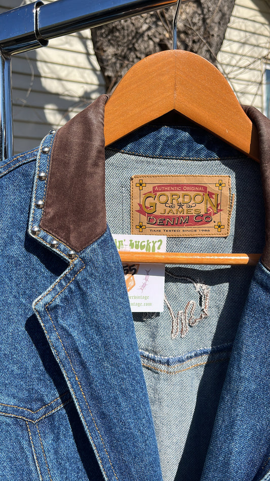90s suede + studded denim blazer for sharn