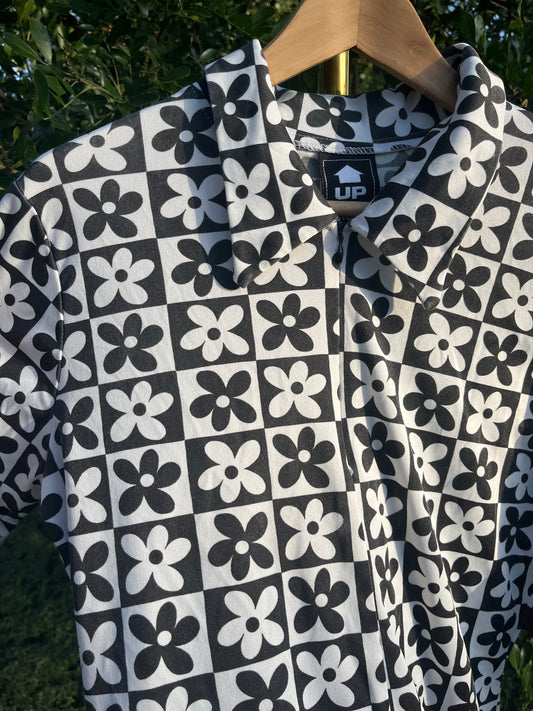 90s does 60s checker flower dress + 90s rayon floral maxi for candace