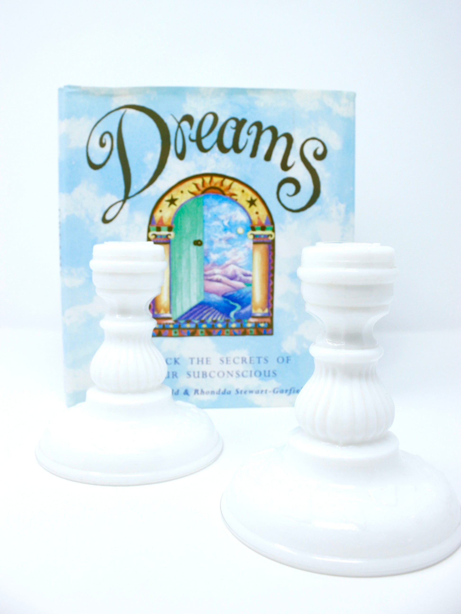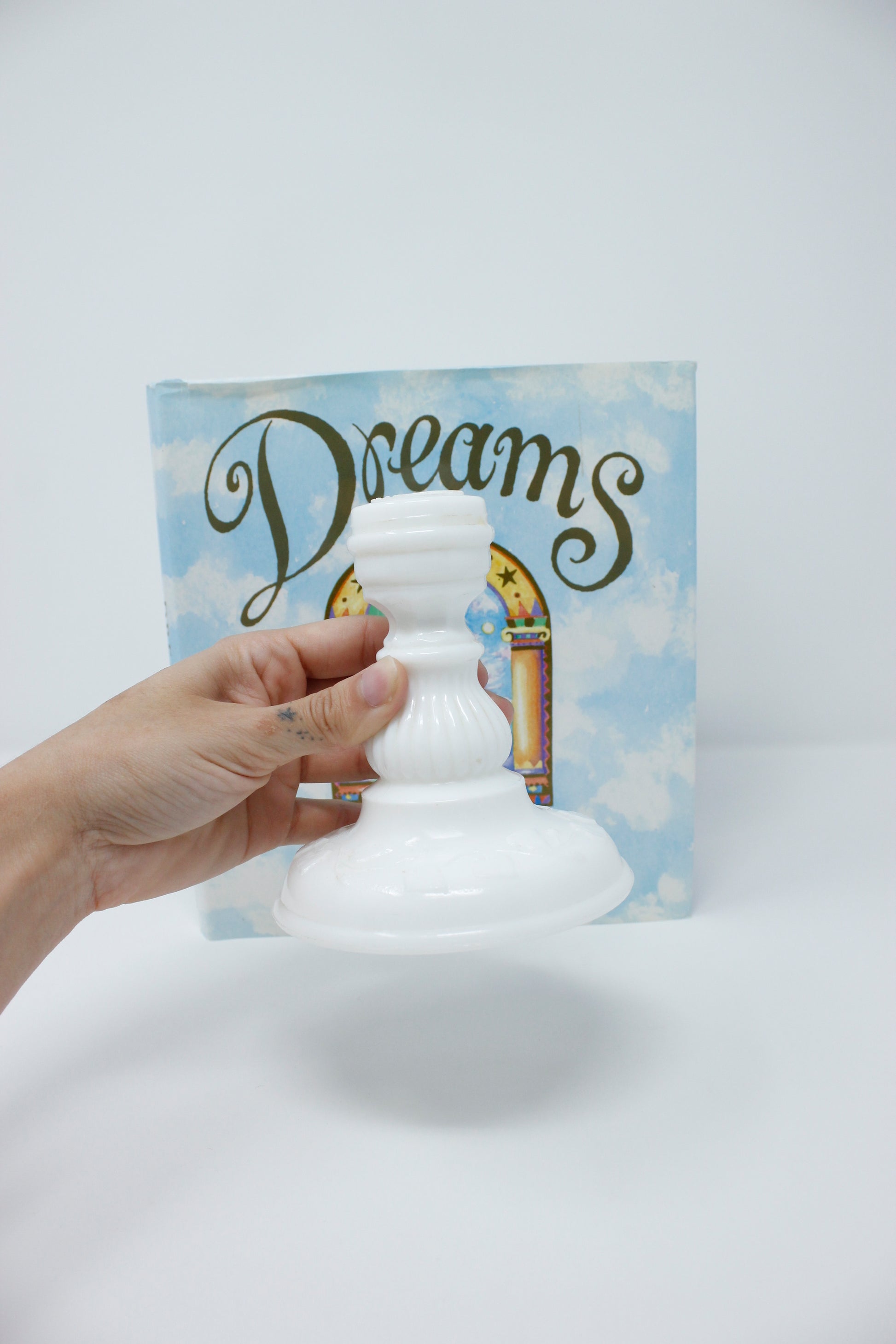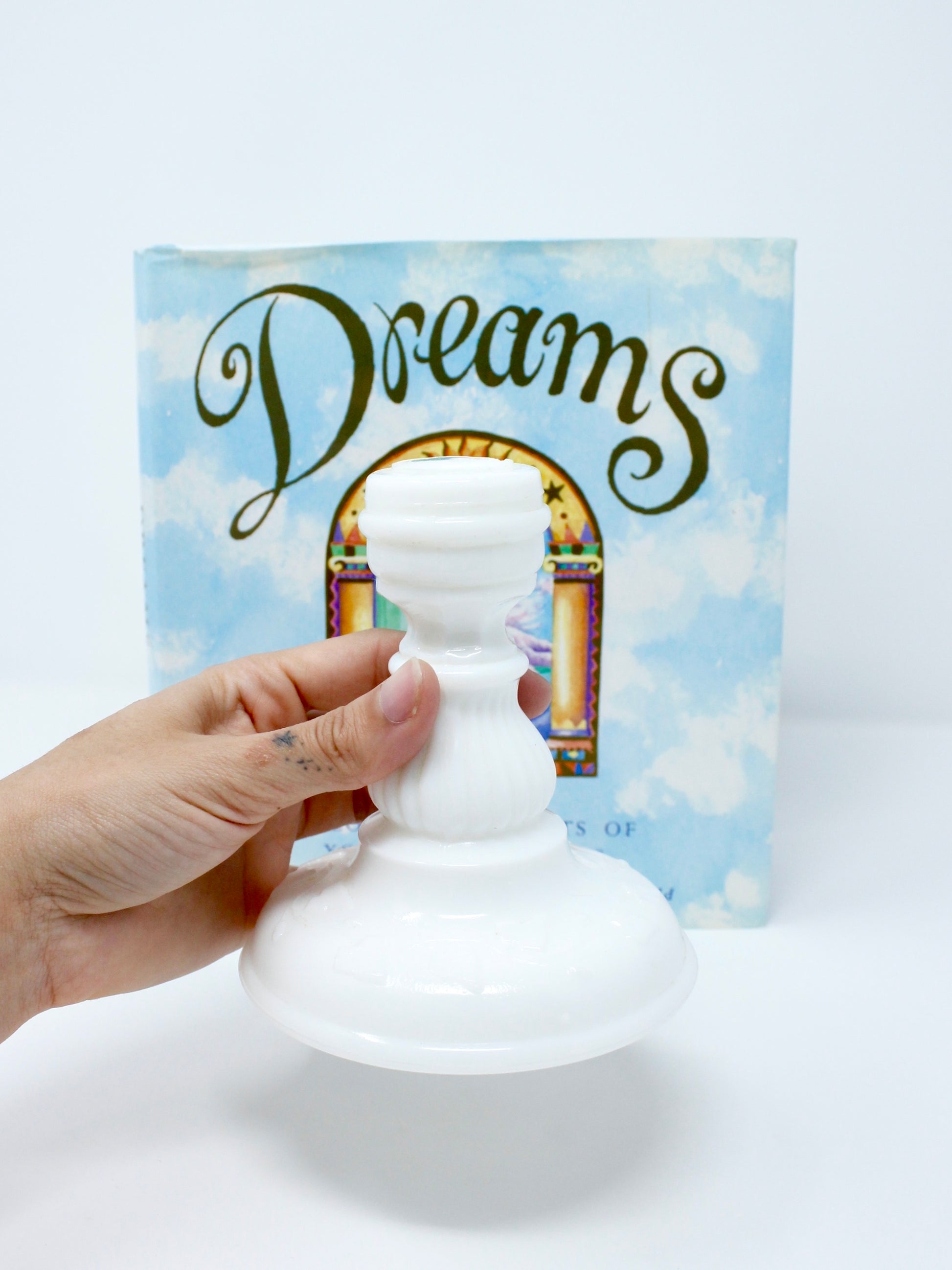 Set of two mid century milk glass candlestick holders. Overall good condition see photos for detail!