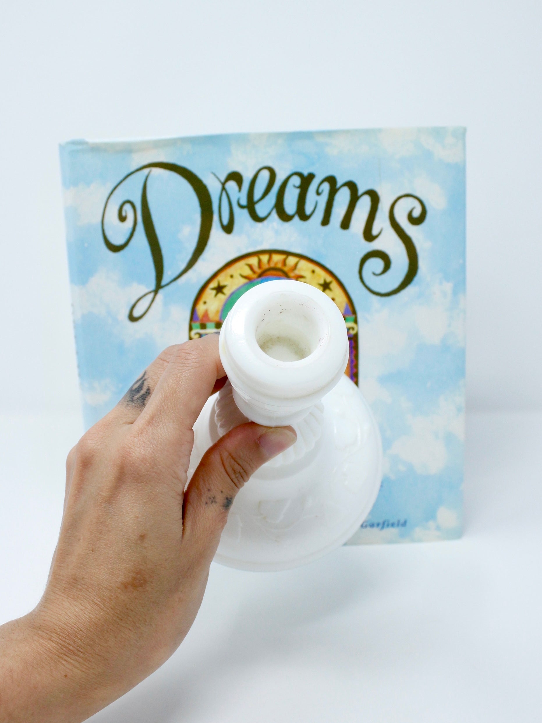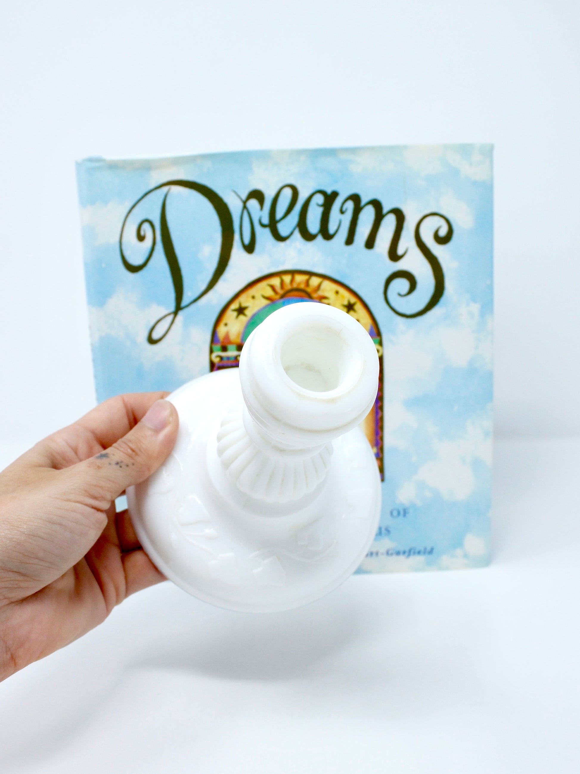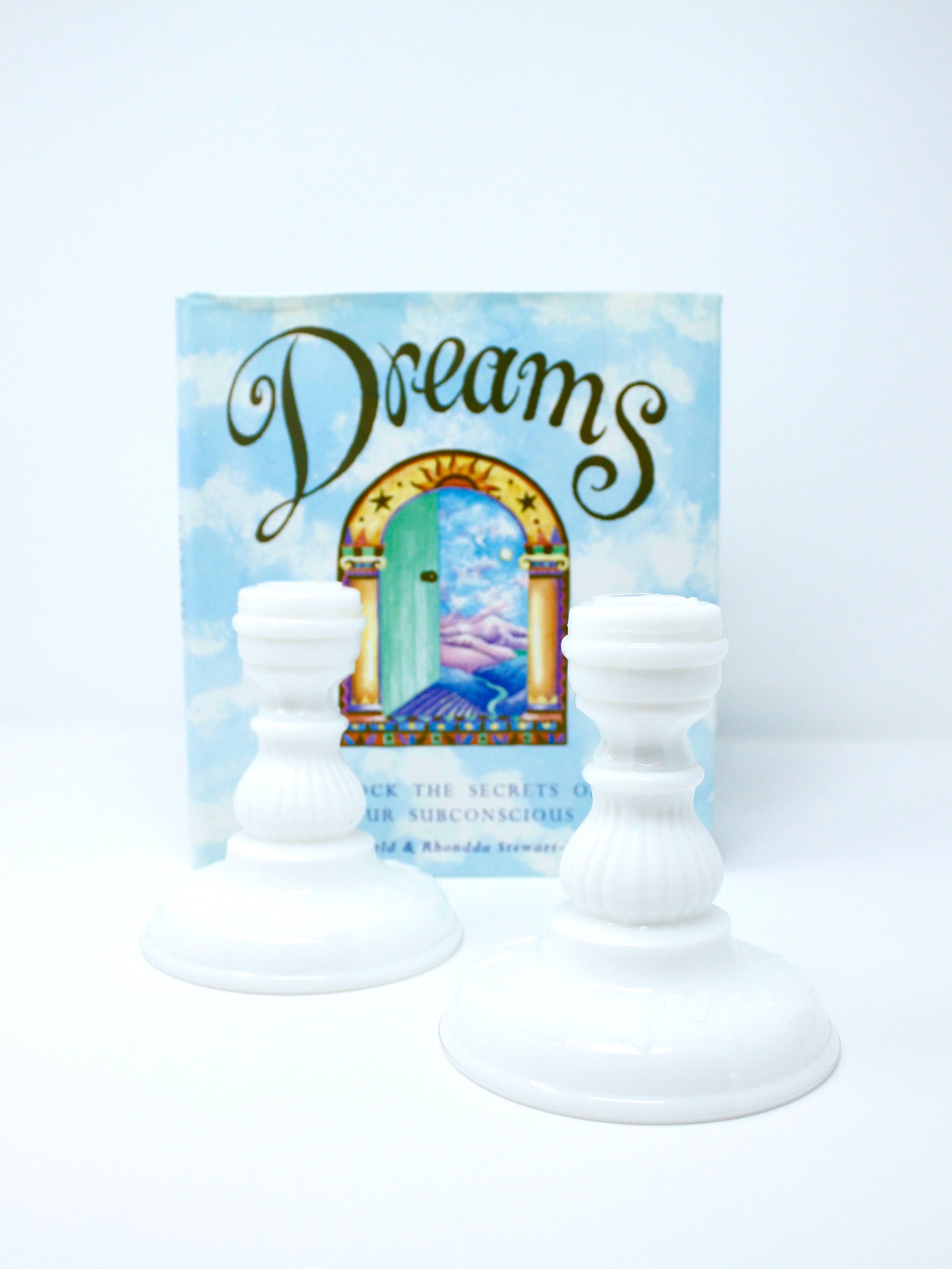Set of two mid century milk glass candlestick holders. Overall good condition see photos for detail!