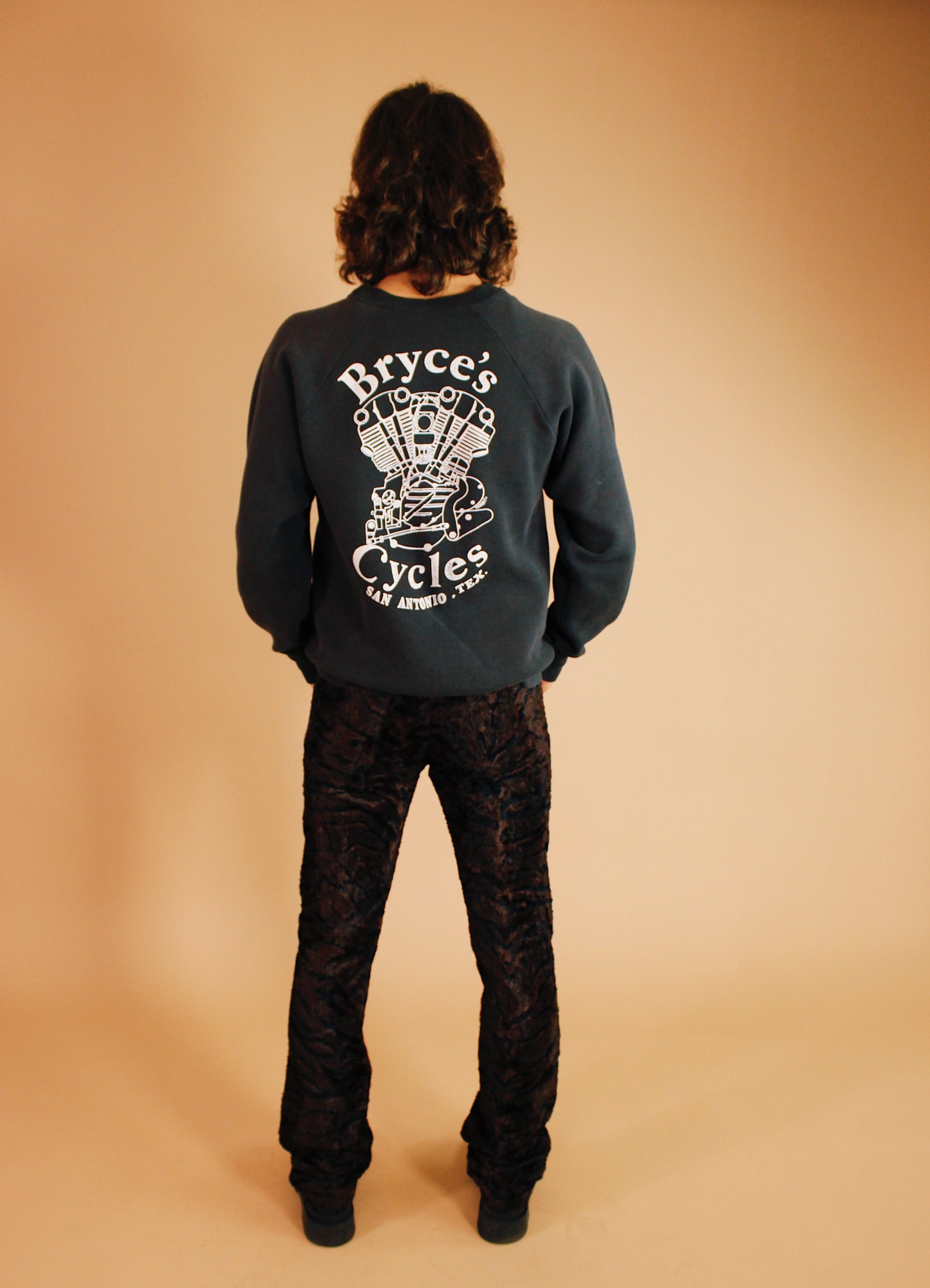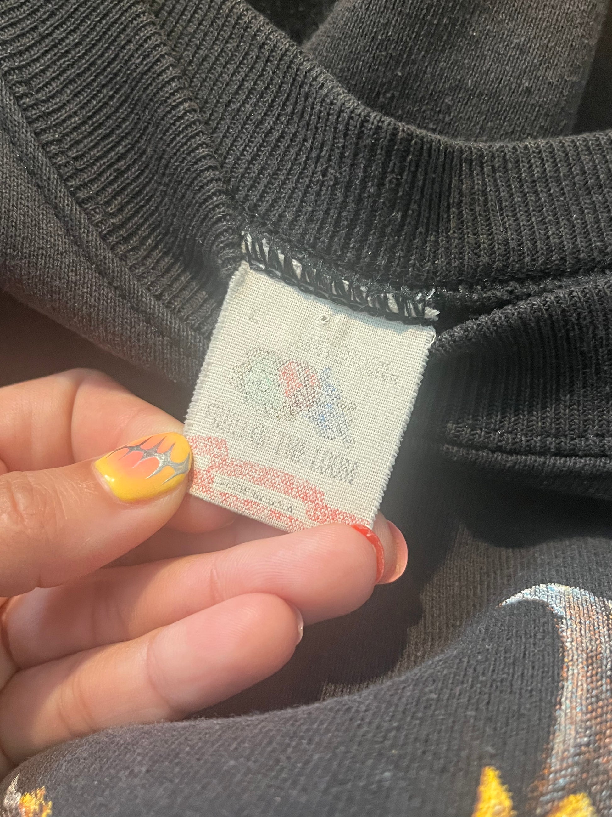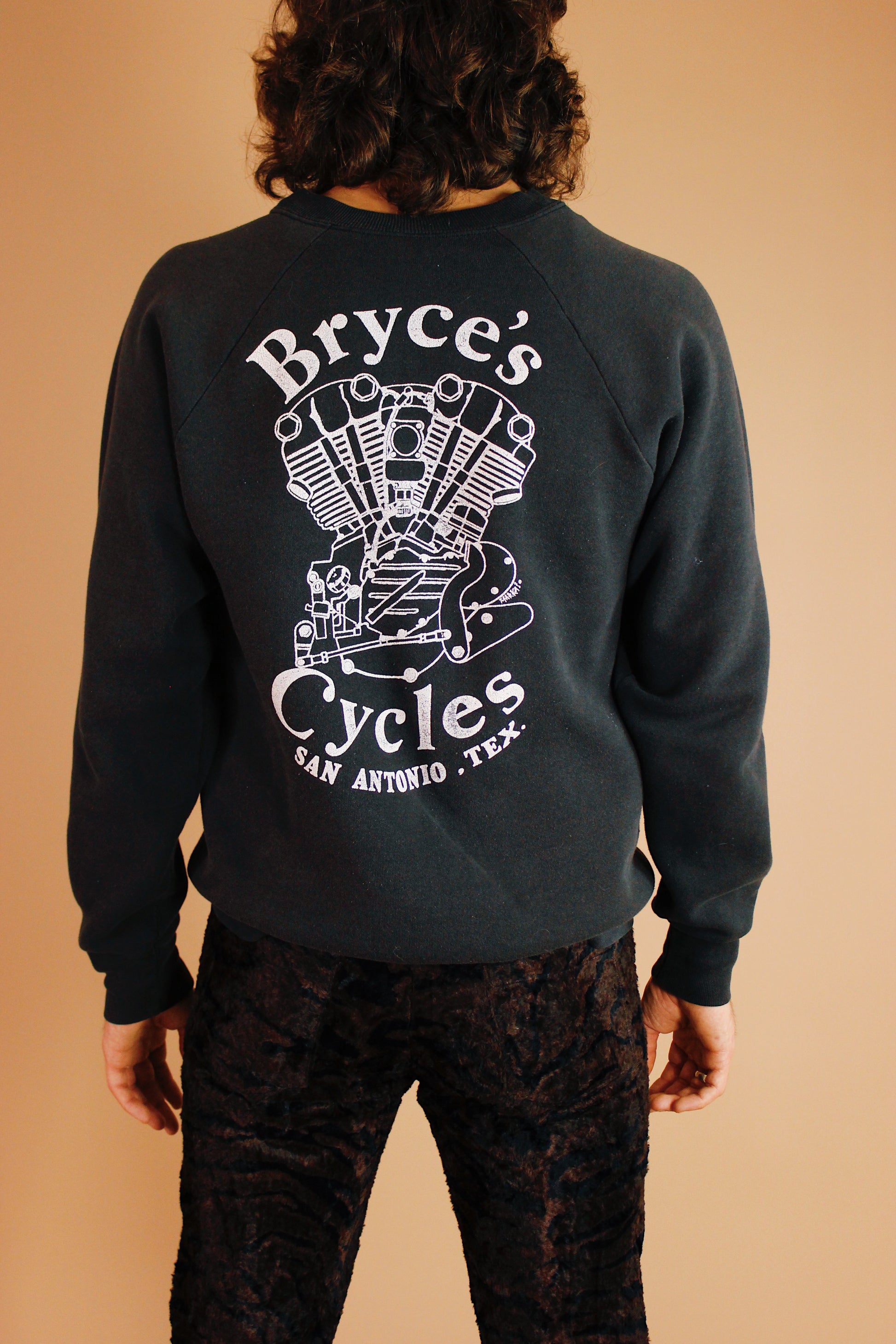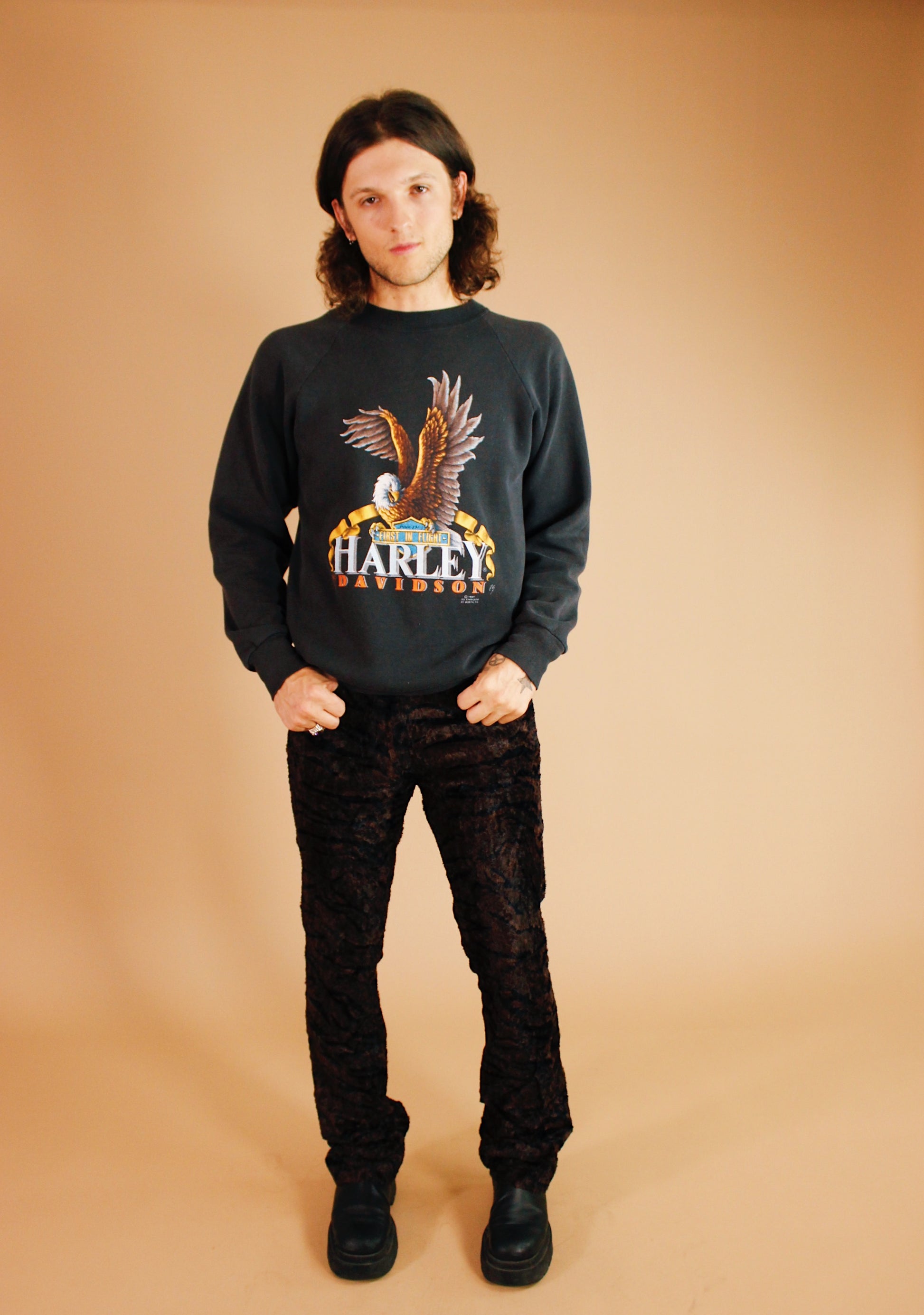 Vintage 80s coveted harley davidson 3D emblem sweatshirt. Double sided print featuring a bold eagle graphic on the front and a San Antonio harley graphic on the back. A comfy classic that you'll just keep reaching for! Dated 1987. Tag size L, fabric content is washed out. Made in USA. Best fits a M-L. Seen on Sky.