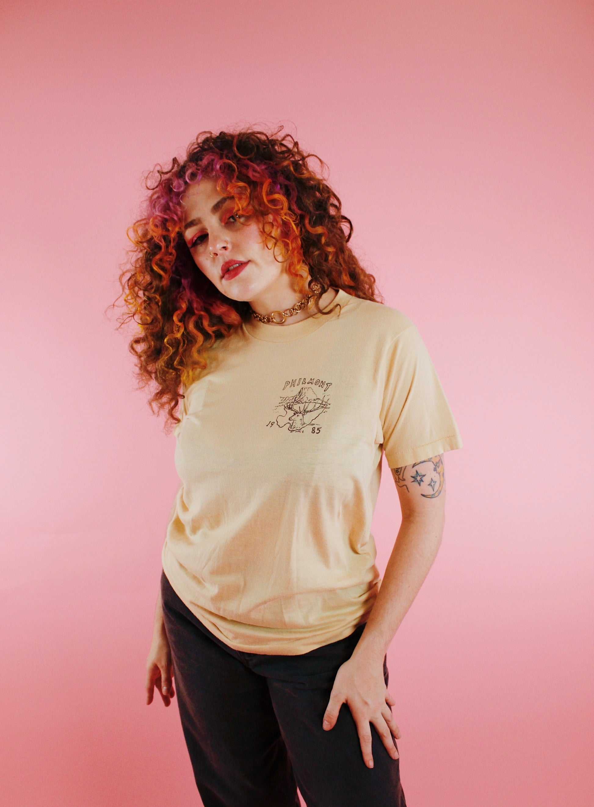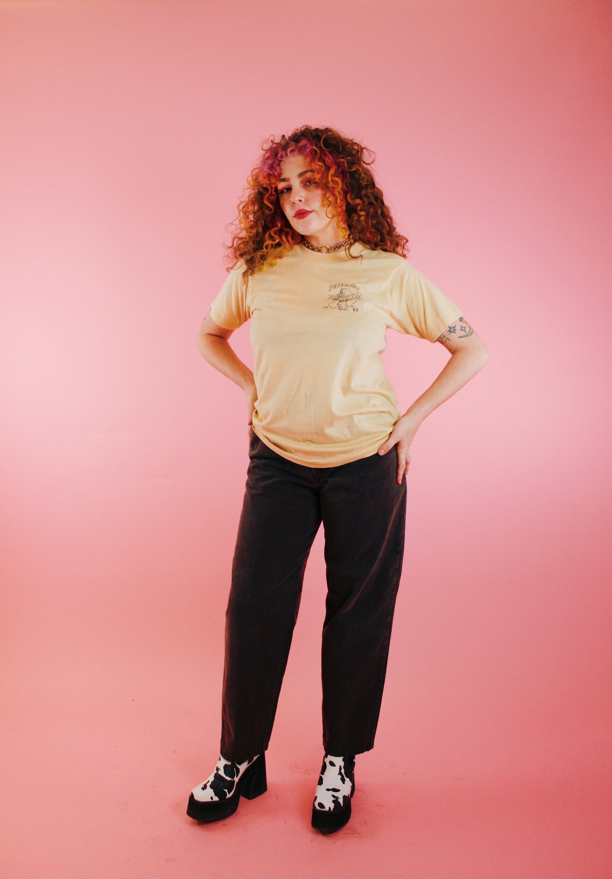 Vintage 80s neutral tone Philmont ranch tee. Never seen this print before but tees from this ranch are highly desirable/ collectible! Features a moose graphic on the chest. Feels soft, thin, and single-stitched. Tag size L, 50% Cotton 50% Polyester. Made in USA. Best fits a S-M. Seen on Bailey.