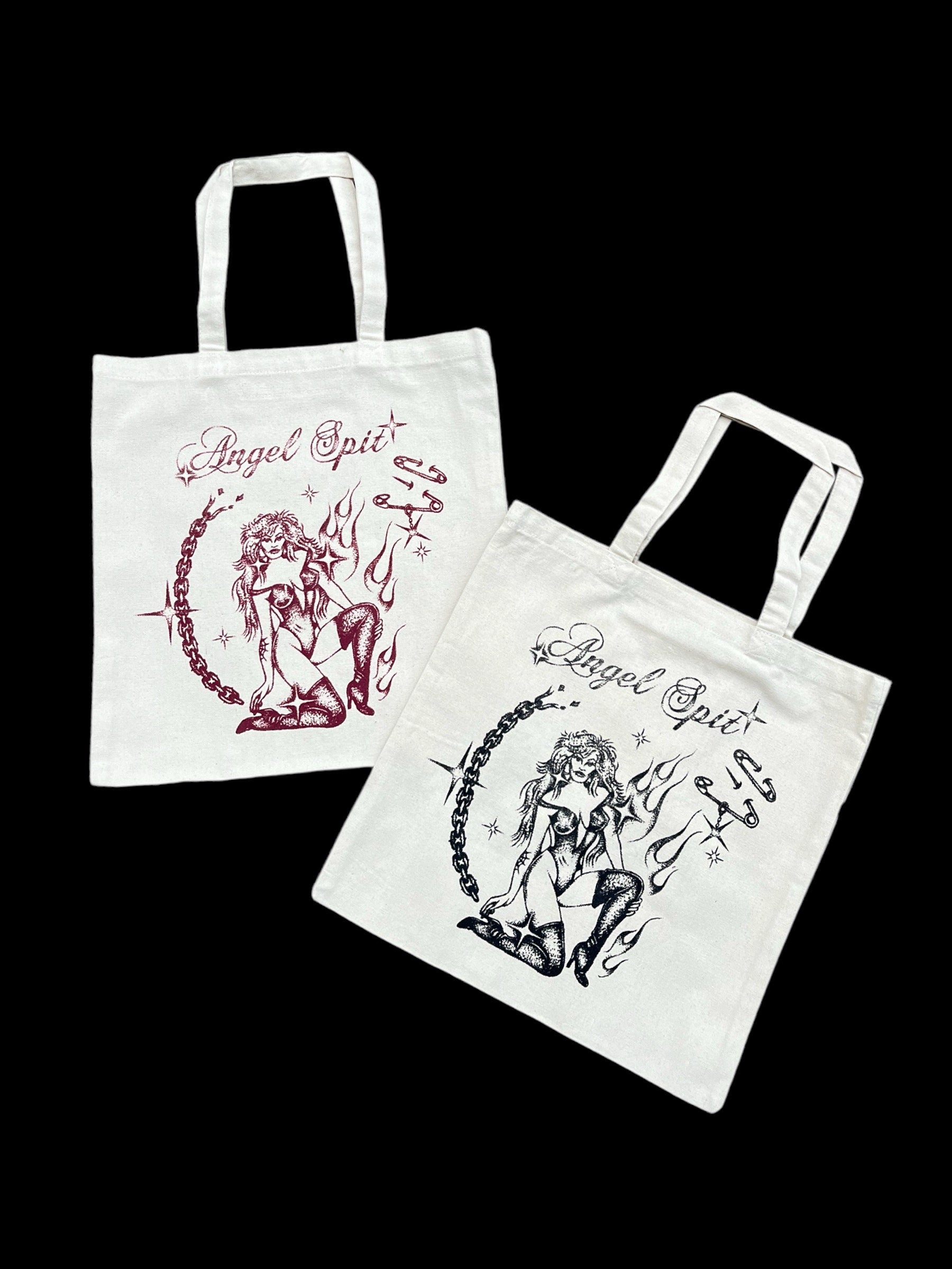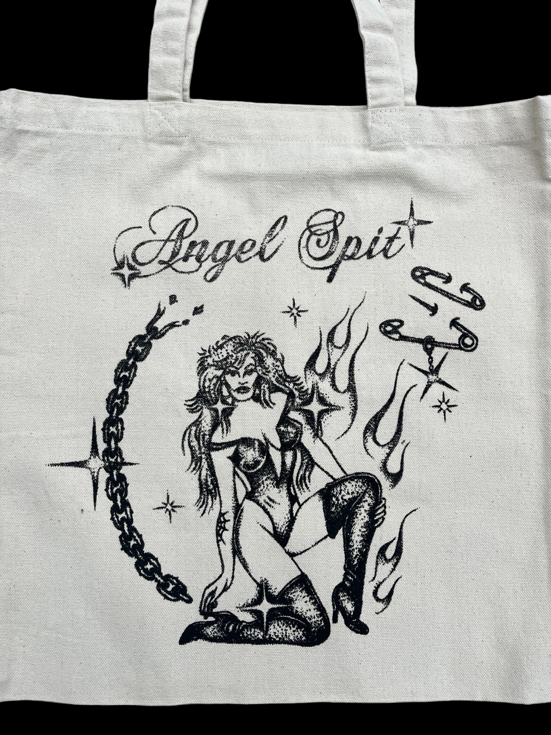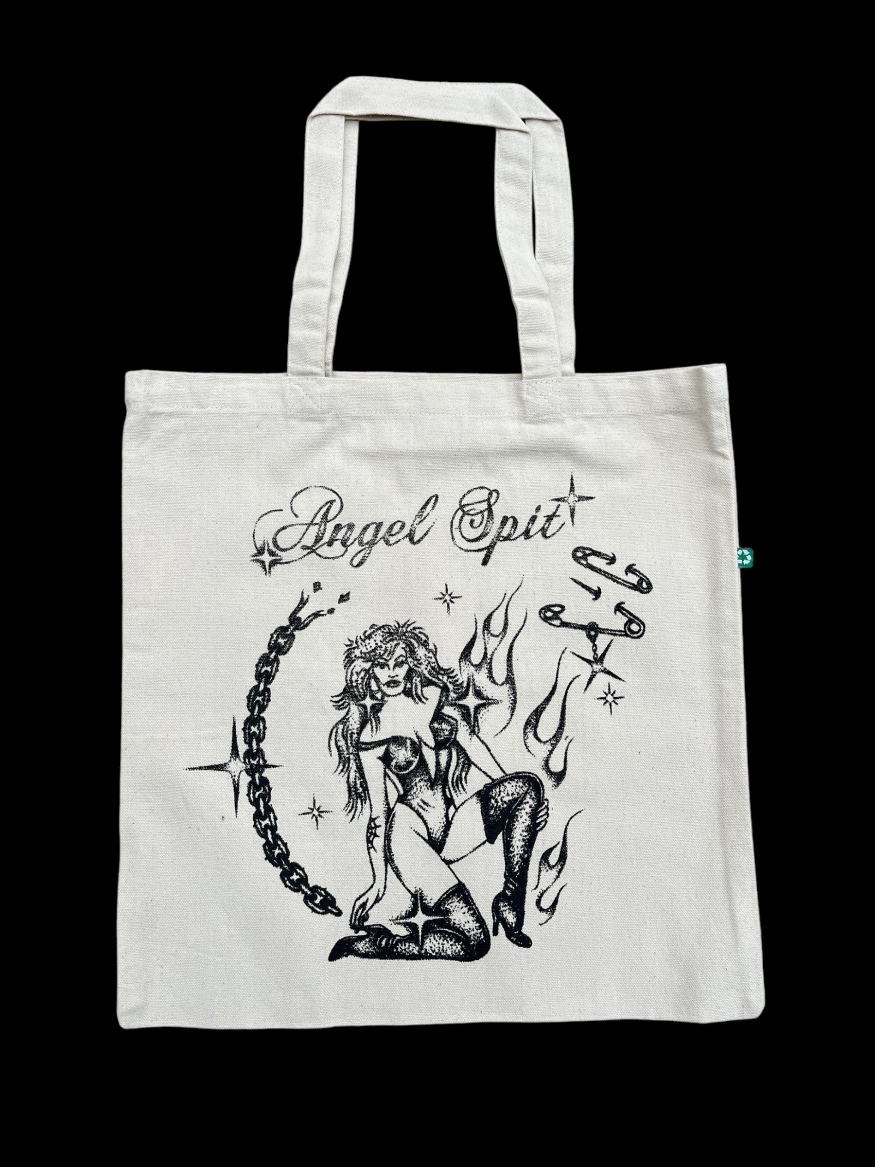Angel Spit chain baddie tote-- locally screenprinted on eco-friendly canvas bags
