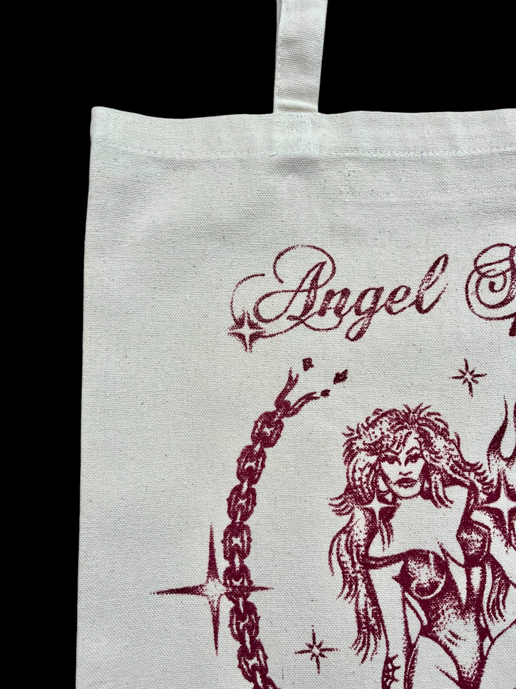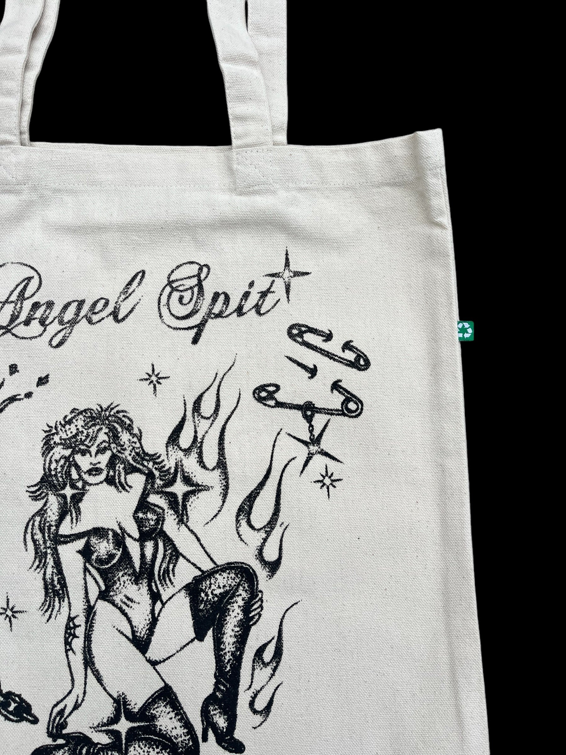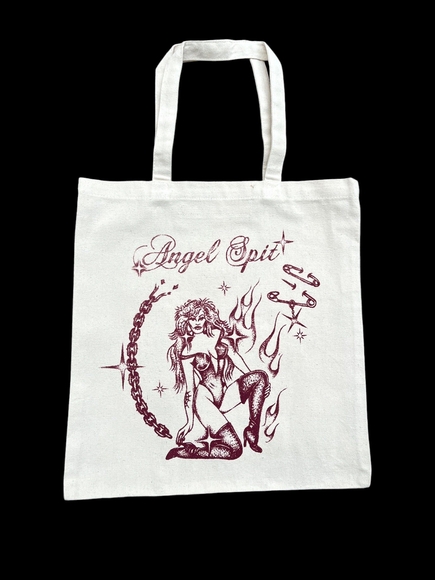 Angel Spit chain baddie tote-- locally screenprinted on eco-friendly canvas bags