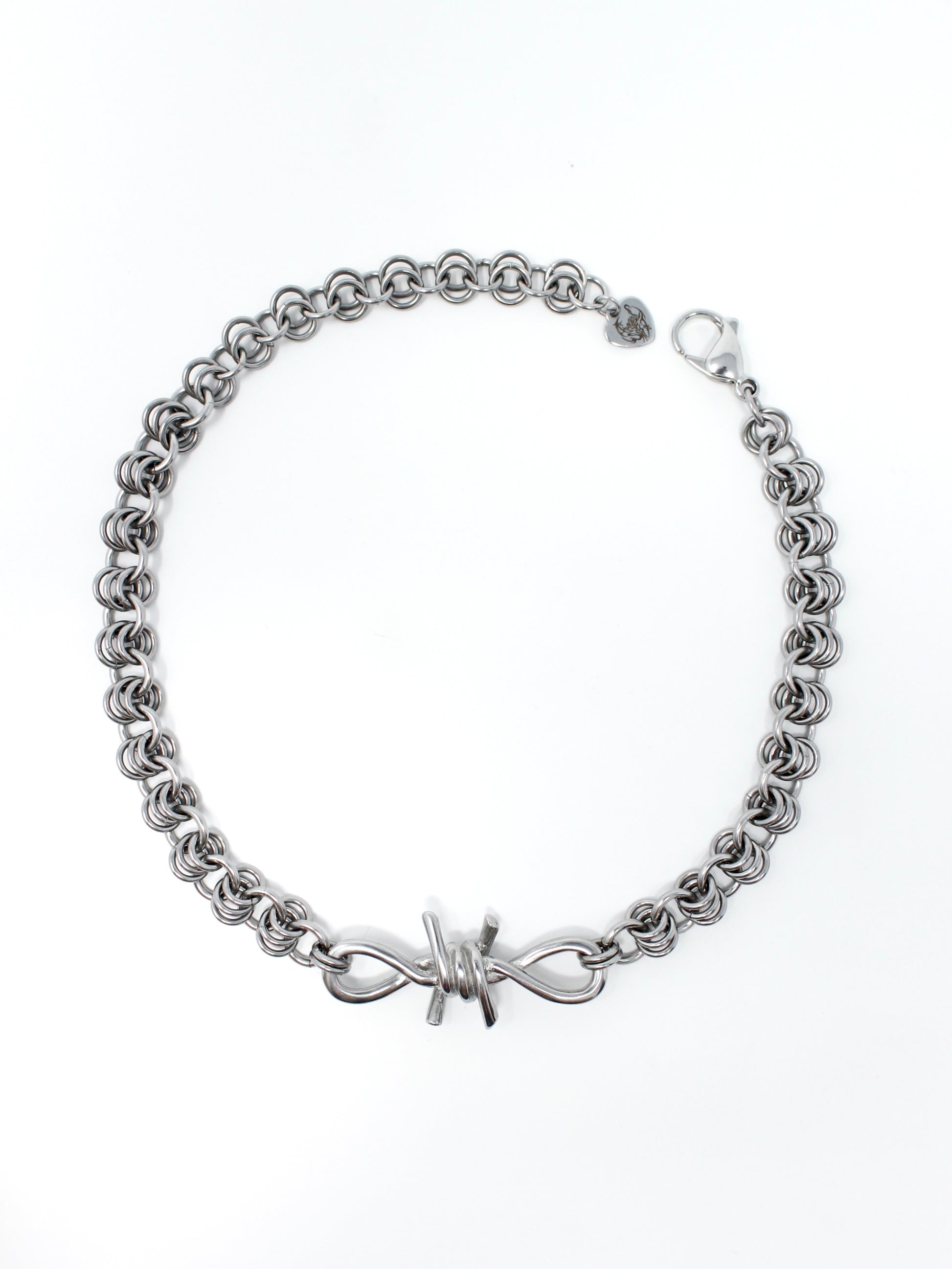 Simple, dainty chain with a unique steel barb pendant. Super cute worn as a tight choker or a bit looser to rest at the base of the neck