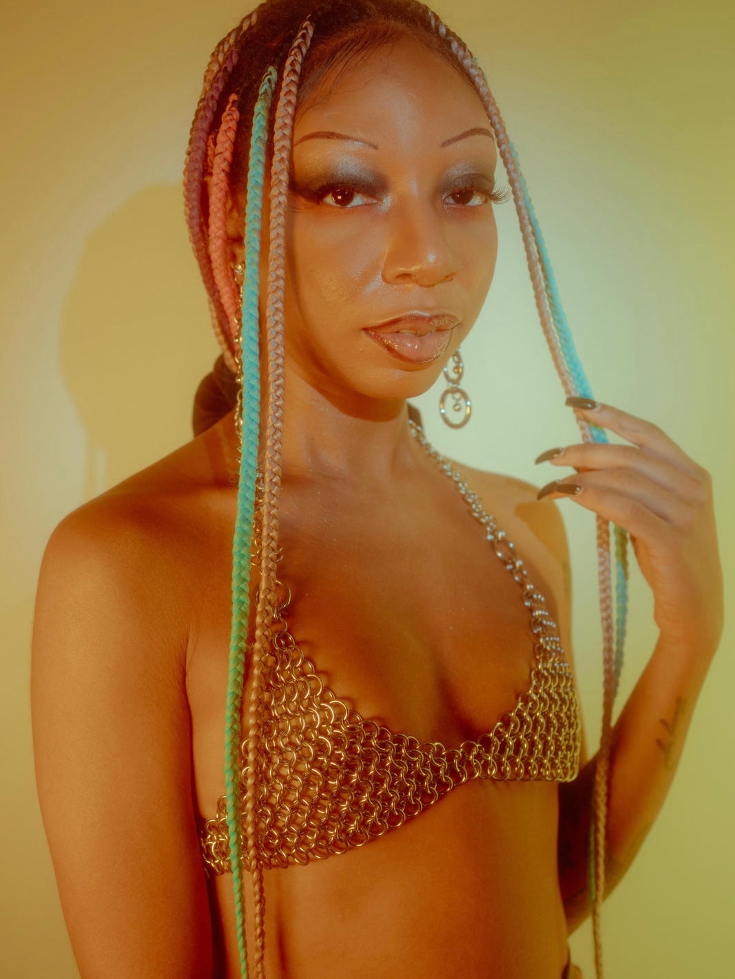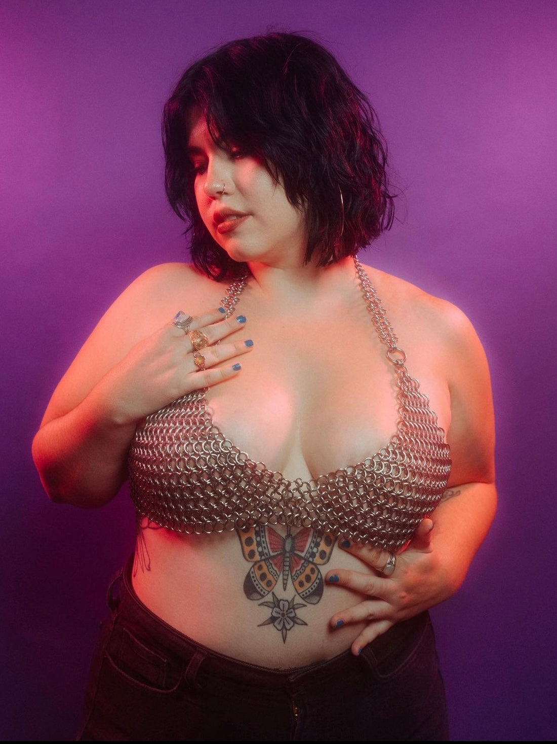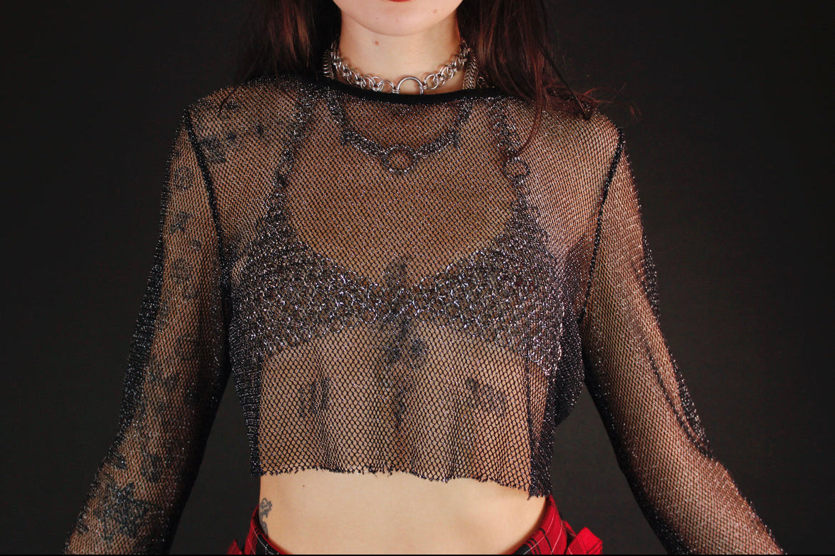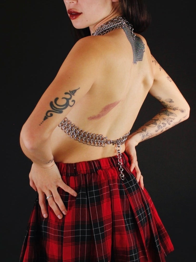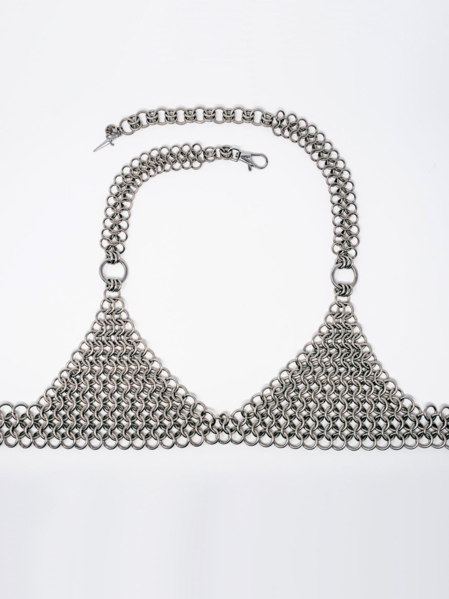 Our best selling chainmaille halter bra top. A statement piece that accentuates and lifts the chest. Super hot on any body type.