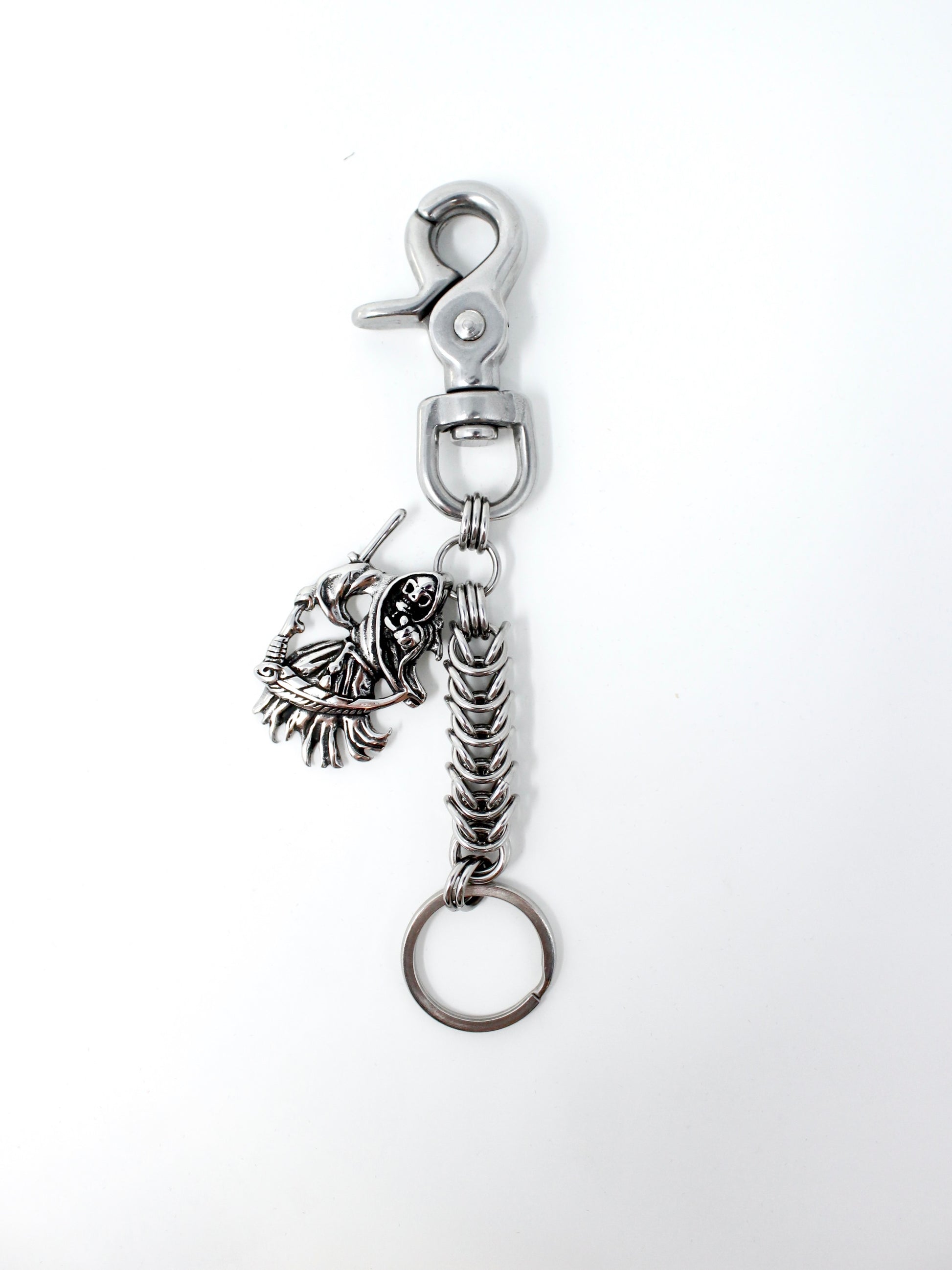 Heavy duty and hellish keychain with a bold grim reaper pendant and trigger snap clasp. Super convenient to clip to your belt loops, tote bags/ purse straps, etc!
