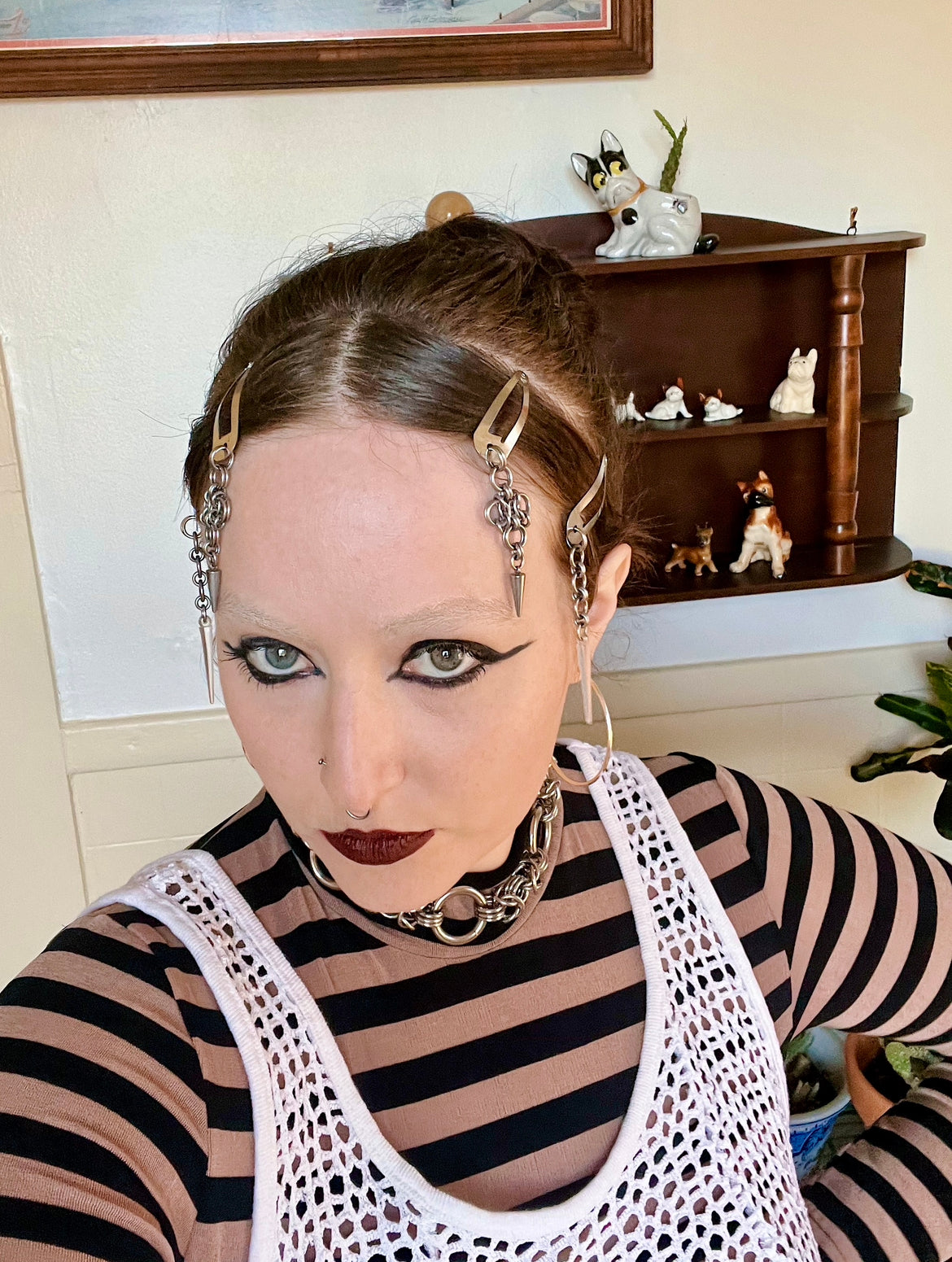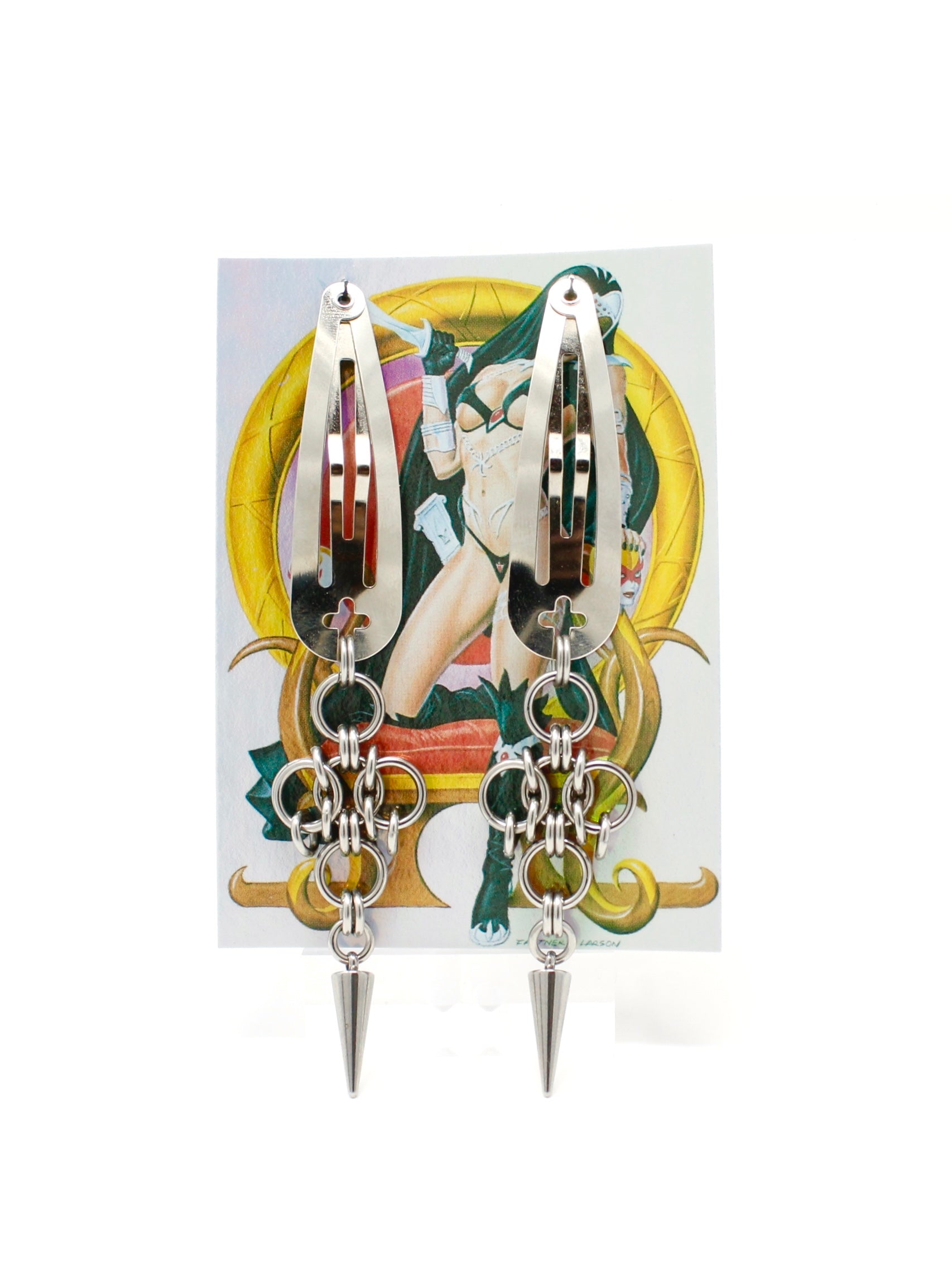 Our best selling cross shaped dangly spike hair clips. A fun and unique statement accessory