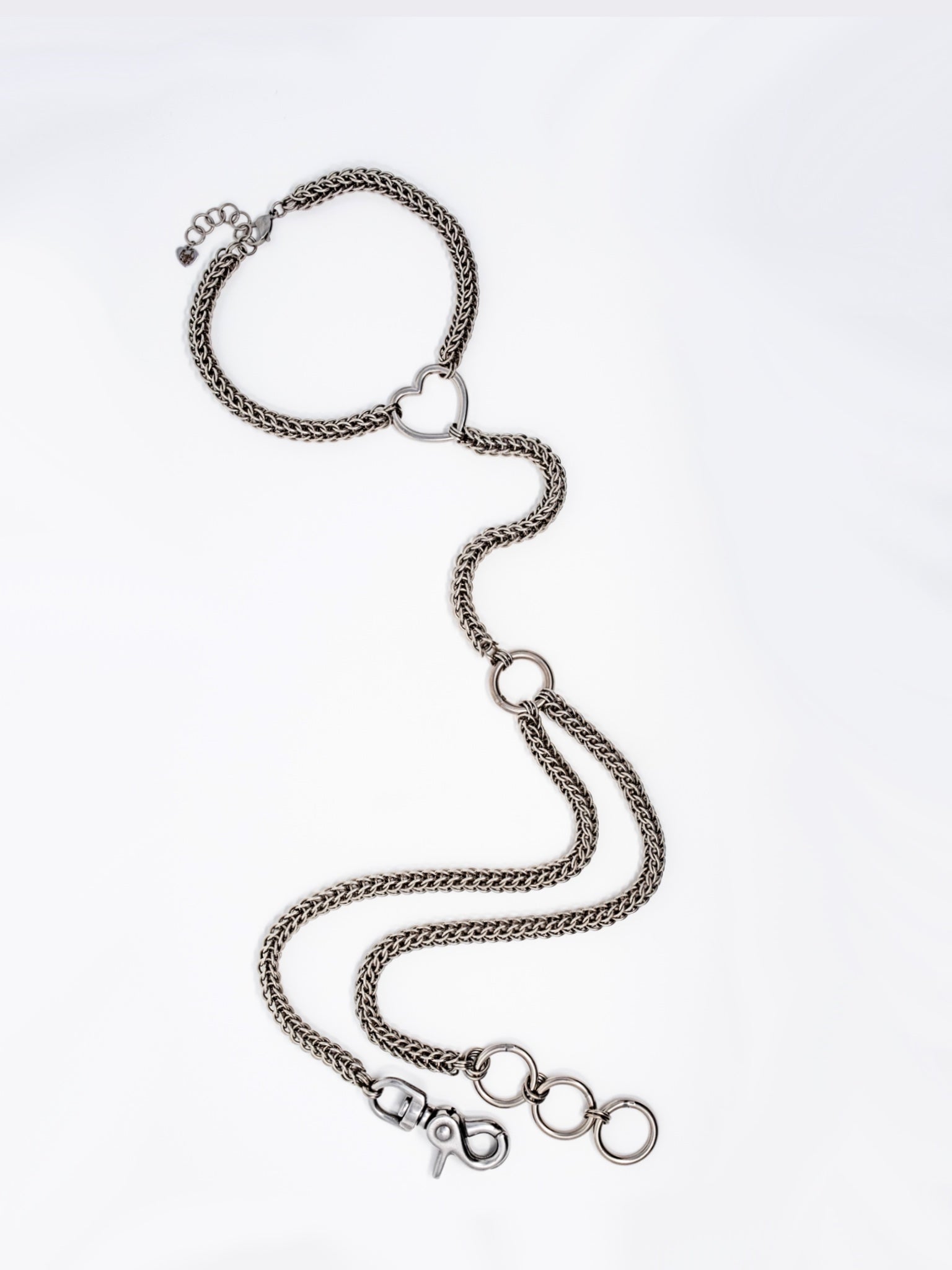 Tough but sweet-- this full persian harness features a heart choker and O-ring elements. Style it with your fave bodysuit, dress, or even with a t-shirt